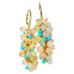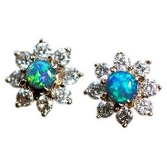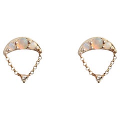 These earrings are just beautiful! They are 14k yellow gold with opal cabochons. Two are 4 mm, one is 3 mm and 1 is 2 mm on each earring. All told each earrings has 1.01 carats o...
