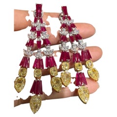 These earrings are so cool. They make their own statement. The main stones are from Myanmar and is just exquisite. They are very high-quality stones. The rubies are round cut and ...