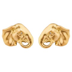 Vintage gold tone lions head designer clip on earrings