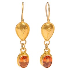 Vintage 14k Yellow Gold 2.02 Carat Fire Opal Post Dangle Earrings 6.78 Grams