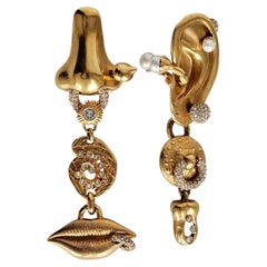 These sophisticated John Galliano Paris clip-on earrings feature a Victorian-inspired design with silvered-metal framing, embellished with black enamel and a resin cameo, and complem...