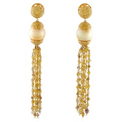 These exceptional Zoe Coste dangling clip-on earrings feature a dramatic shoulder duster shape with a baroque flair. The pieces feature an Oriental-Byzantine design in silvered, aged...