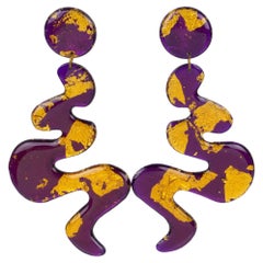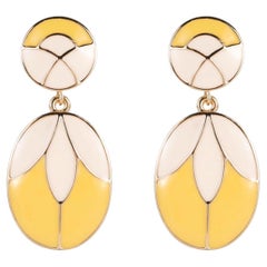 Cilea Paris designed these elegant clip-on earrings. These dimensionally dangling artisanal resin earrings feature a textured pattern and a glossy finish. The lovely spring palette f...