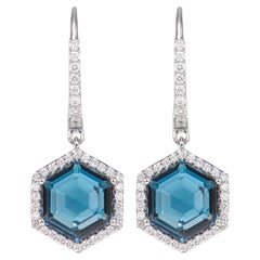 These earrings are just gorgeous! The stones are from Africa and measure .75 cts each. They are a deep rich blue and are oval stones that measure 7 x 4.5 mm. They are surrounded b...