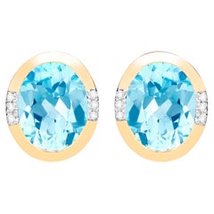 ======================================= Simple chic earrings with a pair of Faceted Oval Shape Blue Topaz size 8x 10 mm set in 14 kt solid yellow gold bezel on the top and 2 Gen...