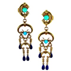 DETAILS • signed TRIFARI crown • gold tone with faux turquoise • vintage designer earrings MEASUREMENTS • CONDITION • very good vintage condition with minimal signs of wea...