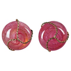 HEIDI DAUS for JIM WALTERS vintage gold tone pink glass designer clip earrings