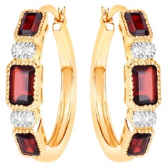 Ruby & Diamond 18k Yellow Gold Honeycomb Hoop Earrings 3.75ctw