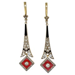 21st Century and Contemporary Unknown Art Deco Enamel Earrings