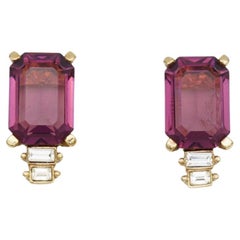 CRAFT signed vintage silver ruby glass black enamel designer clip on earrings