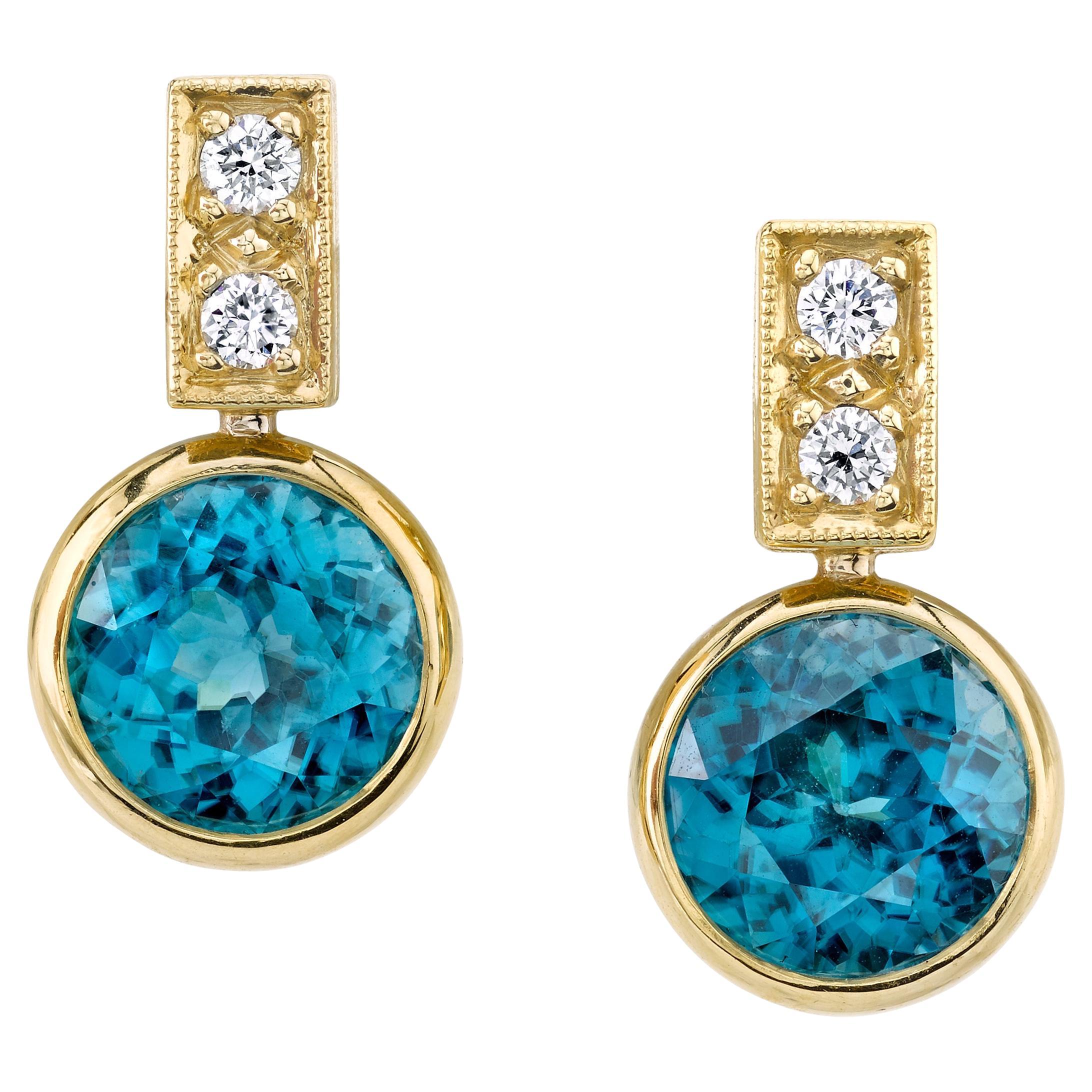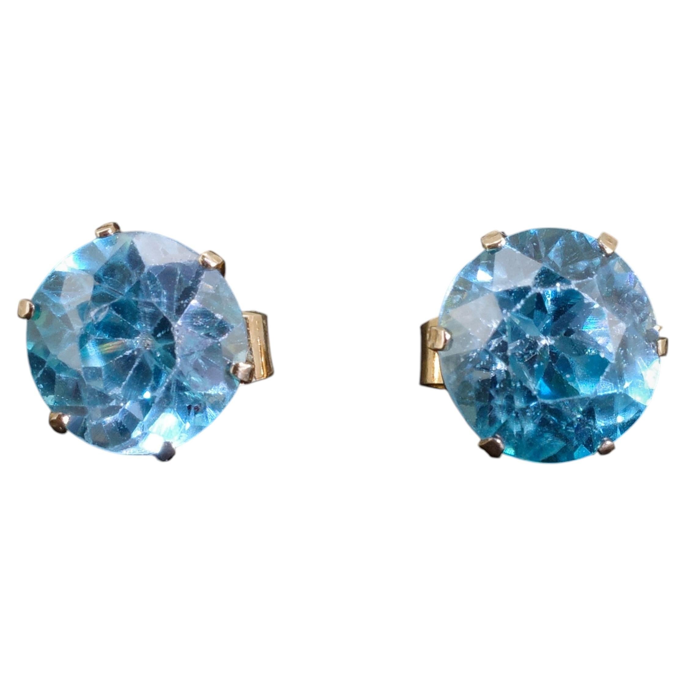 Late 20th Century Thai Art Deco Blue Zircon Earrings