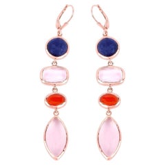 Rossella Ugolini Design Collection, Art Deco Style Drops 18 Karat Gold Green Agate Amethyst Carnelian Turquoise 0.12 Karat White Diamonds Dangle Earrings