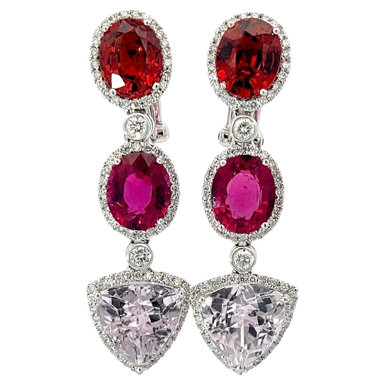 Set in 18K Gold, 15.09 carat, Kunzites, Black Onyx & Diamonds Stud Earrings