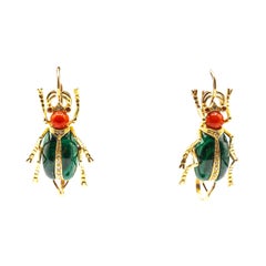Lapis Lazuli Round Carved Cabs Malachite Cushions 14k Solid Gold Stud Earrings