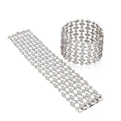French Art Deco Diamond Bracelet (Converted Watch), Platinum & 18k White Gold Diamonds: approx. 3.00 carats total weight, single cut; graded H color, SI clarity Metal: platinum ...