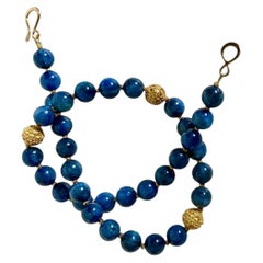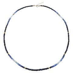 Handcrafted Modern Artisan Silk Beaded Necklace by Variously in Indigo & Gold