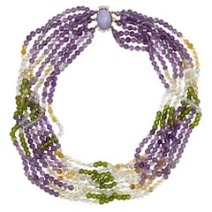 White Pearl Choker Necklace Aquamarine Amethyst Gold Filled – Pastel Multi-Stone Jewelry by J Dauphin A luminous beaded choker by J Dauphin, combining aquamarine, amethyst, and whit...