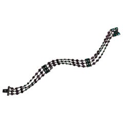 Triple Strand Deep Purple Jade and Sterling Silver Necklace with CZ Clasp