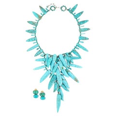 Vintage gold tone glass turquoise grapes leafs designer necklace bracelet set