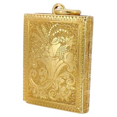 Etruscan Revival Antique 14K Yellow Gold Oval Locket Pendant Brooch