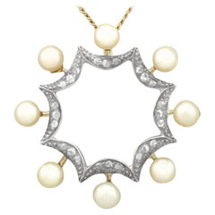 Antique 9ct Gold Edwardian Diamond and Pearl Starburst Pendant and Brooch