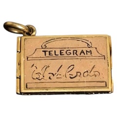 The pendant measures 1 “ from the bottom of the ball to the top of the bale. The scarab measures 11/16” x 1/2”. The bale measures 5 mm. The piece weighs 2.55 grams. The gold is unmarked and acid tests as 14k.