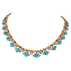 Retro Garnet solid 830 and 18K Gold Plated Silver Necklace. 34 linked florets each holding 7 rose cut Red Garnets. Florets Ø7 mm - 8 mm. All stones with open backs. Secure " V " lock...