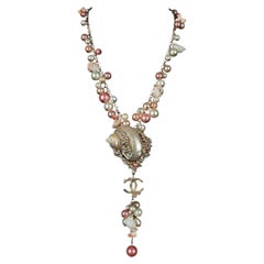 This stunning Angela Caputi, made-in-Italy, choker necklace features an extra-large flat resin chain design in creamy butter color with white swirling and a black contrast. Her color...