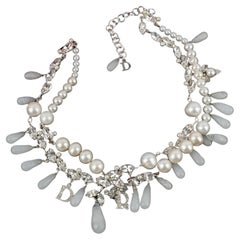 Add a lasting touch of glamour to your evening wear with this exquisite Lanvin crystal and ribbon collar necklace. The decadent emerald green, citrine yellow, and clear colored cryst...