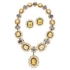 Bochic “Capri” Vintage Multi Sapphire & Ruby Necklace Set 18K Gold & Silver
