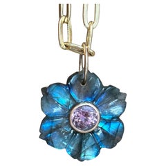 Lioness Pendant, Labradorite, Pink Tourmaline & 14k Gold
