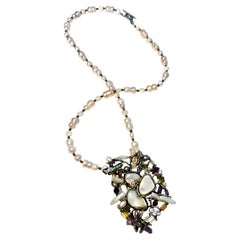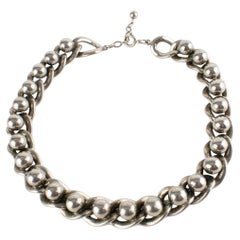 Vivianna Torun Bulow Hube for George Jensen, a rare Sterling Silver Necklace with reddish brown banded agate detachable pendant on collar, Denmark, C. 1975, stamped Georg Jensen in a dotted oval, Denmark, Torun, 133 pendant and 160 collar and 925S. Will fit up to 16 inch neck, pendant drop approximately 2.75 inches, width of agate 2 inches. Item Weight: 123 grams. Ref: The Jewellery Box Jens Ingvordsen P.275. Vivianna Torun Bülow-Hube know as Torun, was born 1927 in Malmo, Sweden. Torun was the first woman silversmith in the world to gain international recognition. She studied at Konstfack, the School of Arts, Crafts and Design in Stockholm, beginning in 1945 while pregnant with her first child, Pia. Eventually she married the child's father, a Danish journalism student. In 1948, Torun spent the summer in Paris meeting Picasso, Braque, Matisse, and the other great artists of the day. She married a French architect and lived in Stockholm until 1956 having a second child, a son, Claude. As early as 1952, Torun exhibited her jewelry, made both in Stockholm and France (and bearing hallmarks from each country) in Paris. In 1956 she moved to France with her third husband, Walter Coleman. She designed jewelry for among others, Billie Holiday which Holiday wore when she performed. The couple moved to Biot in the south of France. Torun produced many pieces during this period when young Swedish silversmiths would come to work in her studio, introducing her to new techniques. Torun renewed her acquaintance with Picasso who lived in the area and an exhibition of Torun jewelry...