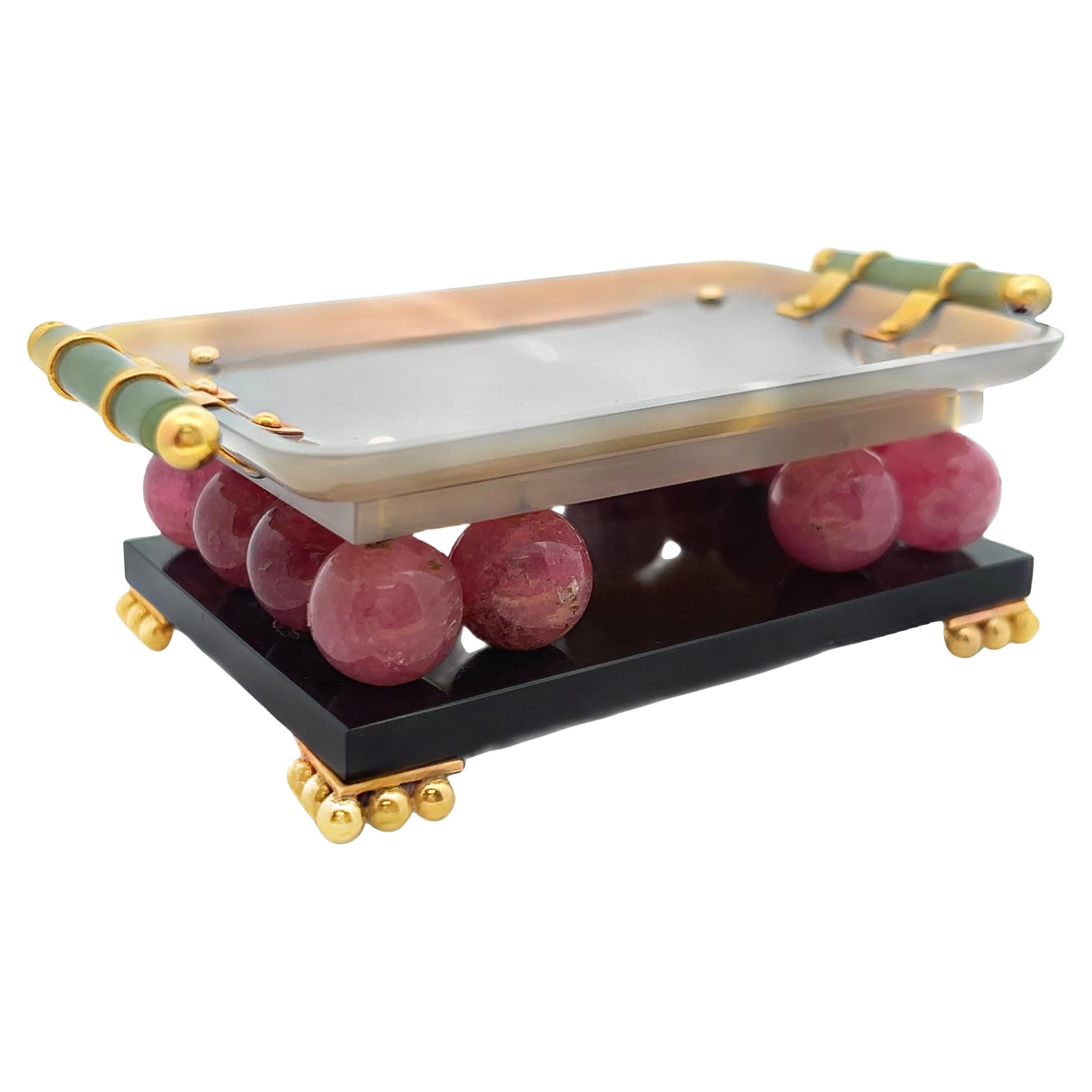 Agate, Jade, Onyx, Tourmaline, 18k Gold