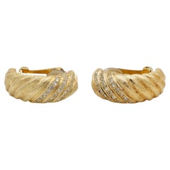 Christian Dior Vintage 1980s Whole Sparkling Crystals Wing Petal Floral Blossom Chunky Clip Earrings, Gold Tone