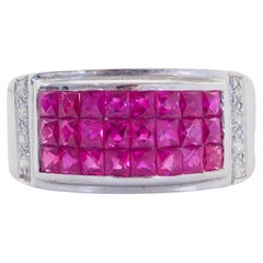 Vintage Modernist Square Shank 18k Gold Diamond Band Sz 5.25