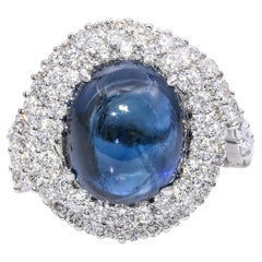 New 6.40 Carat Fancy Cut Oval Aquamarine & Diamond Cut Sapphire Ring Size 6.25