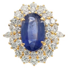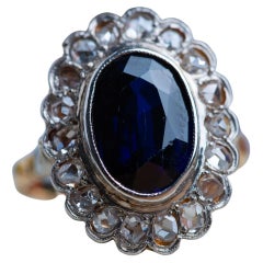 Antique 18ct Yellow Gold, Victorian Sapphire & Diamond Oval Cluster Ring