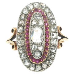 Victorian ring with sapphire and rose cut diamonds 18k gold and silver