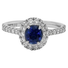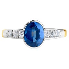 18K Gold 0.90ct Oval Blue Sapphire & 0.08ct brilliant Diamond Band Ring