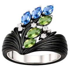 Leto Lama Ocean Ring Band Sapphires Paraibas Emerald and Diamonds in 18 Ct Gold