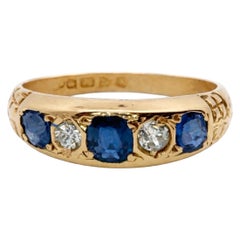 Antique Sapphire & Diamond Ring 18ct Gold Circa 1900 18ct yellow gold ring, set with sapphires and two diamonds in alternating order. Each stone is claw-set into the band, fl...