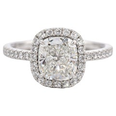 What a beautiful ring! The ring is a size 7.5. It has 15 brilliant cut diamonds measuring 1.80 mm each as the center piece and they are surrounded by 16 1.20 mm brilliant cut diamo...
