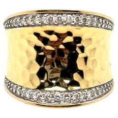 I. Reiss 14k Yellow Gold Matte Hammered .08 Carat Cut Out Ring Size 7