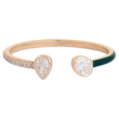 Vintage 18ct Yellow Gold, Double Head Diamond Snake Ring, Circa 1980s