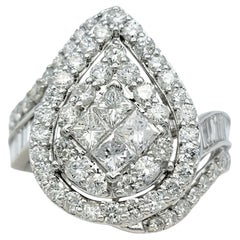 14k Yellow & White Gold 2.45 Carat Large Cluster Pyramid Diamond Ring Size 7