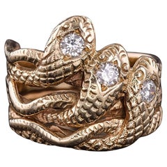 Over time, rings have frequently taken the form of serpents, which have long been associated with eternal life, health and renewal. Italian luxury jewelry house Bulgari has become famous for its widely loved Serpenti motif, for example, and its Serpenti ring, like the other accessories in the collection, began as an homage to jewelry of the Roman and Hellenistic eras. The serpent is now a popular motif in fine jewelry. Jewelry devotees have long pined for rings adorned with reptiles, thanks to antique Victorian rings — well, specifically, Queen Victoria’s illustrious engagement ring, which took the form of a gold snake set with rubies, diamonds and an emerald (her birthstone). Designs for Victorian-era engagement rings often featured repoussé work and chasing, in which patterns are hammered into the metal.