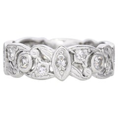 The Art Nouveau movement (1880–1910) brought with it rings inspired by the natural world. Antique Art Nouveau rings might feature depictions of winged insects and fauna as well as women, who were simultaneously eroticized and romanticized, frequently with long flowing hair. Art Deco jewelry, on the other hand, which originated during the 1920s and ’30s, is by and large “white jewelry.” White metals, primarily platinum, were favored over yellow gold in the design of antique Art Deco rings and other accessories as well as geometric motifs, with women drawn to the era’s dazzling cocktail rings in particular.