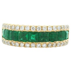 1939 Ring natural 0.6ct Emerald Diamonds solid 18K Gold ØUS9 / 2.1 gr