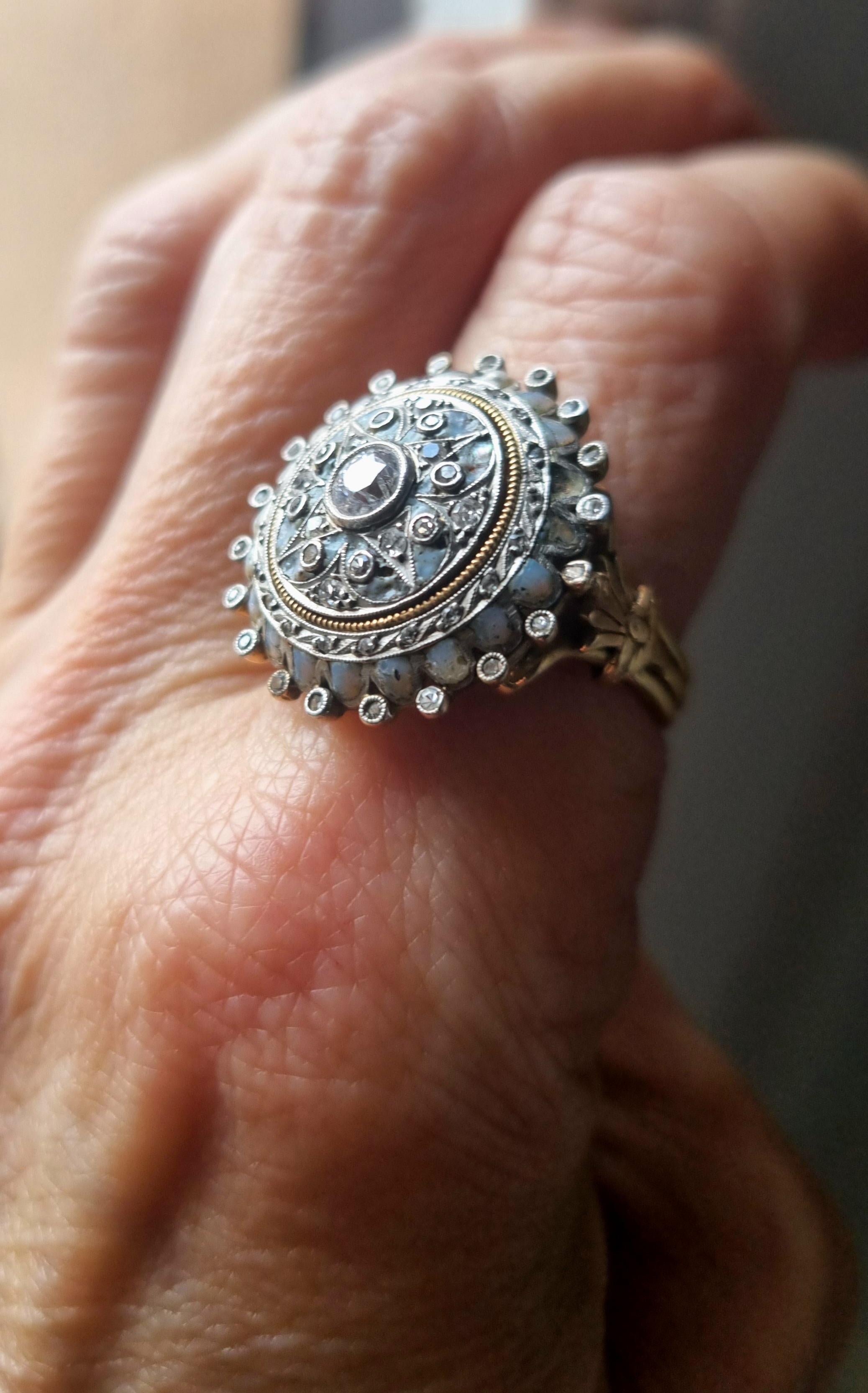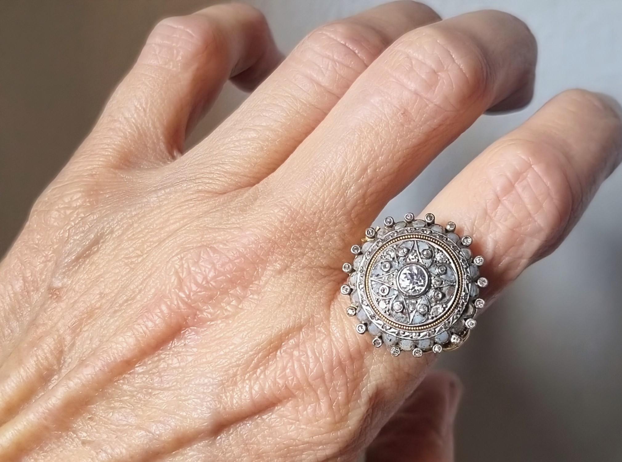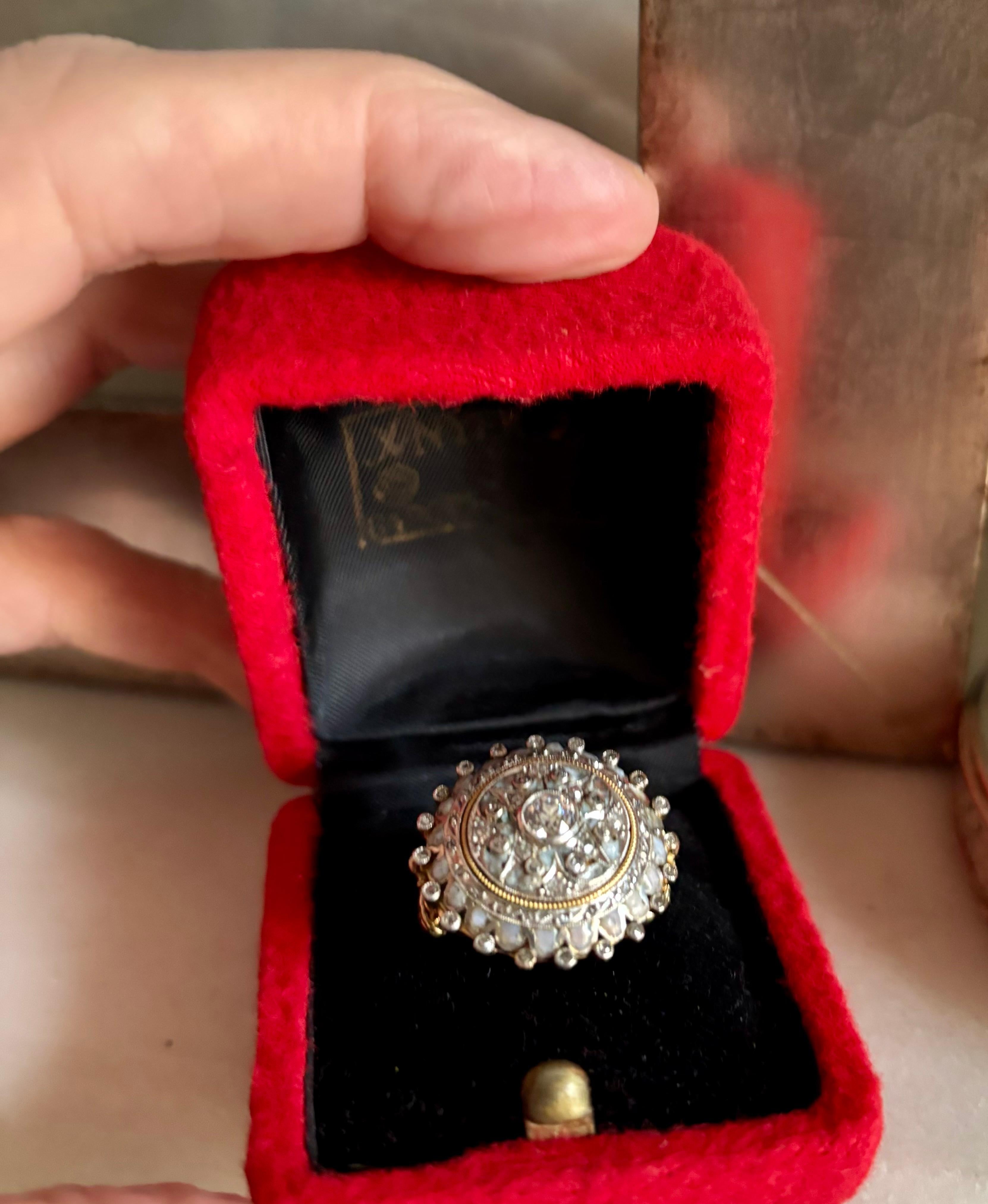 Antique Early French Victorian (19th Century) Cluster Rose Cut and Table Cut Diamond Ring