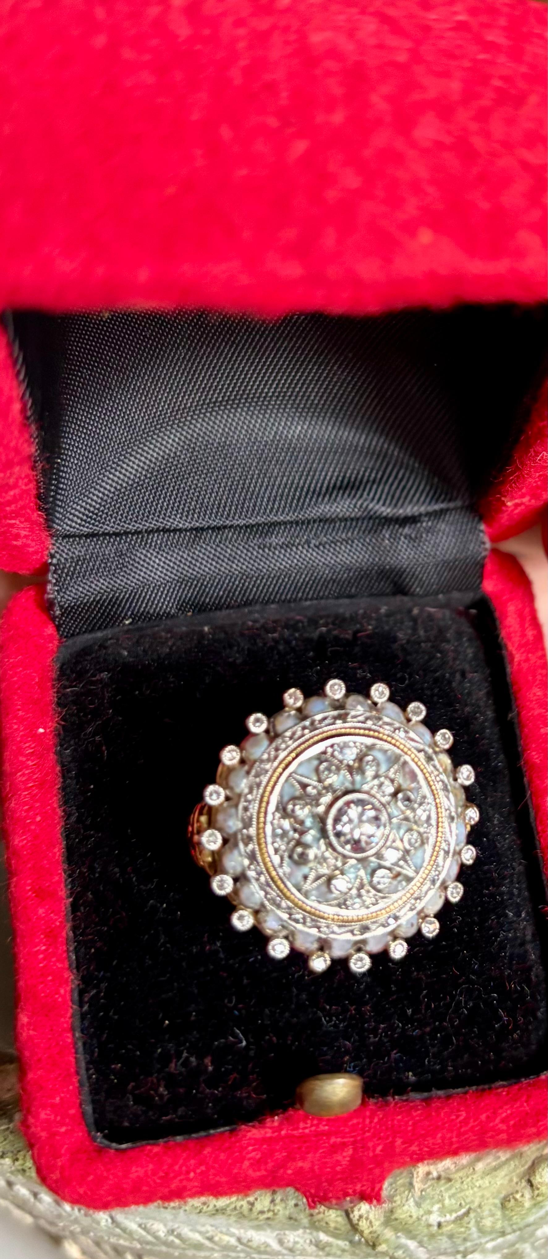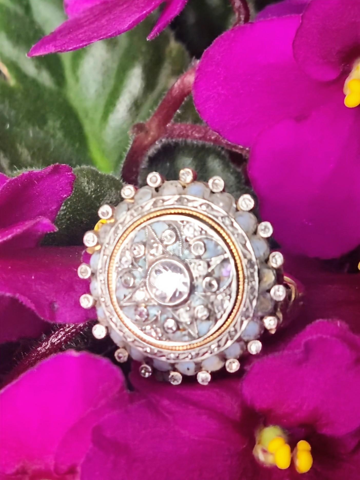 1900s Sparkly Opal Natural Pearl Gold Ring
